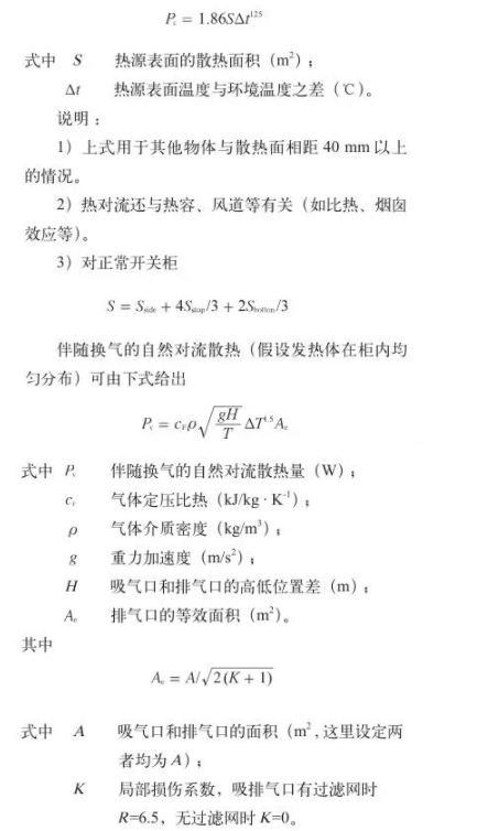 (2)熱對(duì)流是物體表面與相接觸的流體間有溫差時(shí)出現(xiàn)的傳熱現(xiàn)象。柜體表面、氣箱表面或熱源表面的自然對(duì)流散熱可用下式估算