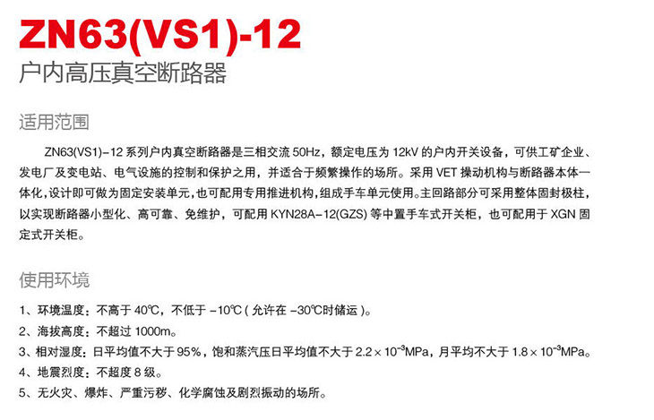 ZN63(VS1)-12戶內高壓真空斷路器